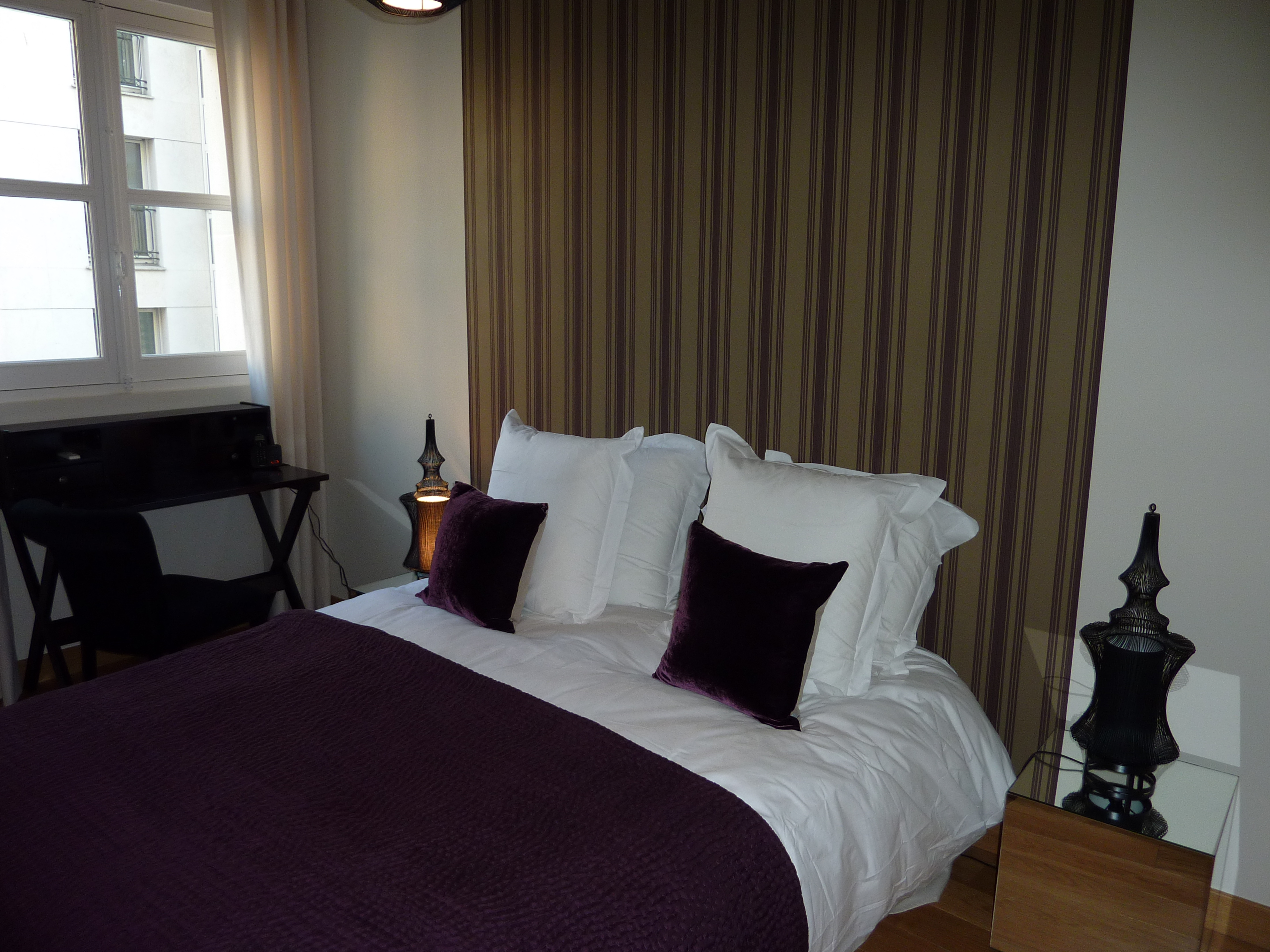 - 1 chambre équipée d’un grand placard, d’un lit 2 places de 1,60m, de 2 chevets, d’un bureau.